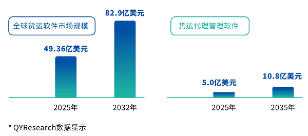 五年前,货代企业见面聊的是“你们上系统了吗”;三年前,聊的是“你们用谁家的”。到了2026年,市场上的软件早已不是稀缺品——QYResearch数据显示,全球货运软件市场规模2025年约49.36亿美元,预计2032年将达82.9亿美元。货运代理管理软件这个细分市场,2025年约5.0亿美元,到2035年预计扩大到10.8亿美元。