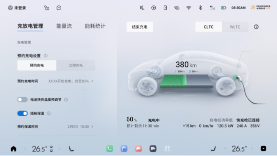 面向星纪元ET车型,仪表盘融合显示导航及地图画面,便于行车中查看路线,体现以驾驶员为中心的座舱设计理念。同时,为2025款星纪元ET、ES增程配备的电池预加热功能,能在用户到达直流快充站前,提前对动力电池进行加热或冷却,确保充电时电池处于最佳温度区间,大幅提升充电效率。